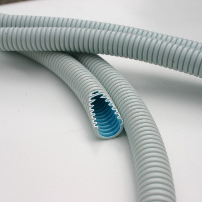 Flexibla elinstallationsrör i PVC med lågfriktionsinsida.