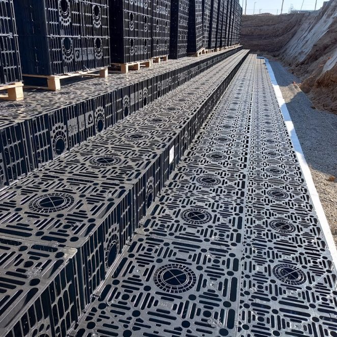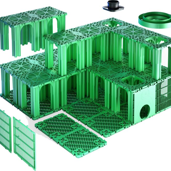 Pipelifes kassett för dagvatten håller grundvattnet på en kontrollerad nivå och förhindrar översvämningar.